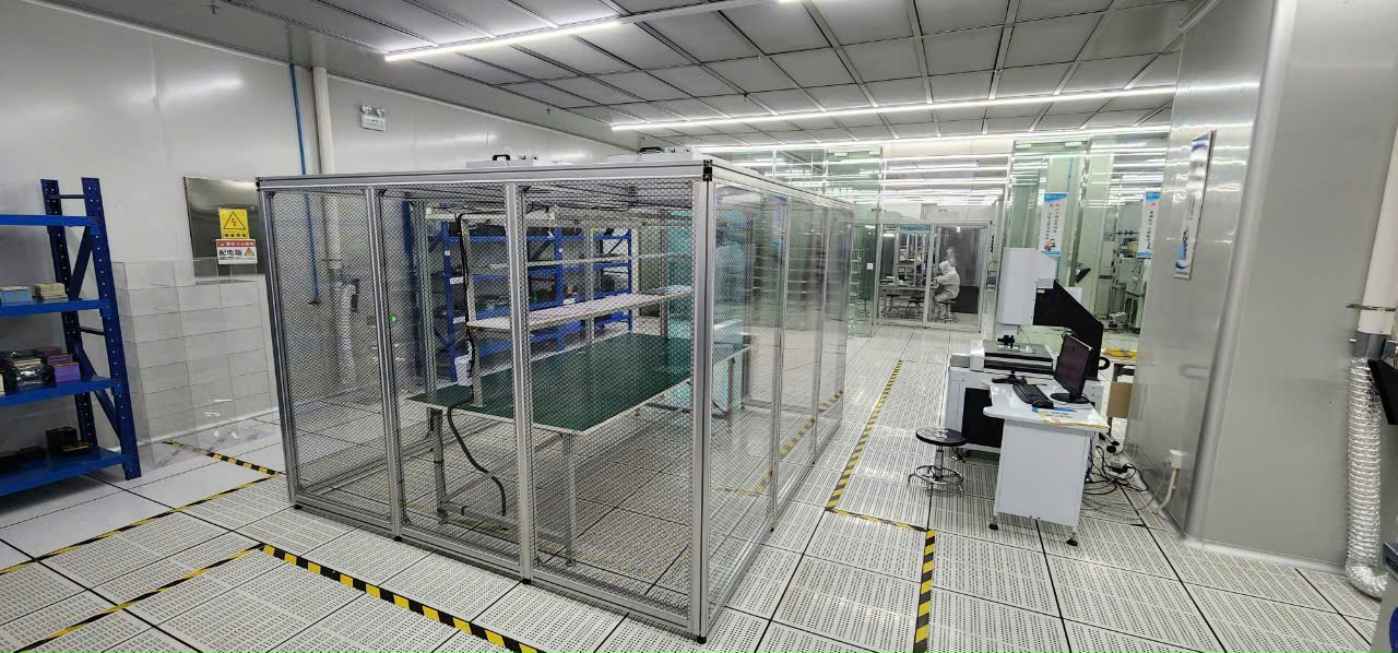 - Vách ngăn (tùy chọn): Sử dụng rèm PVC chống tĩnh điện hoặc tấm panel hoặc kính cường lực để ngăn bụi và duy trì áp suất.